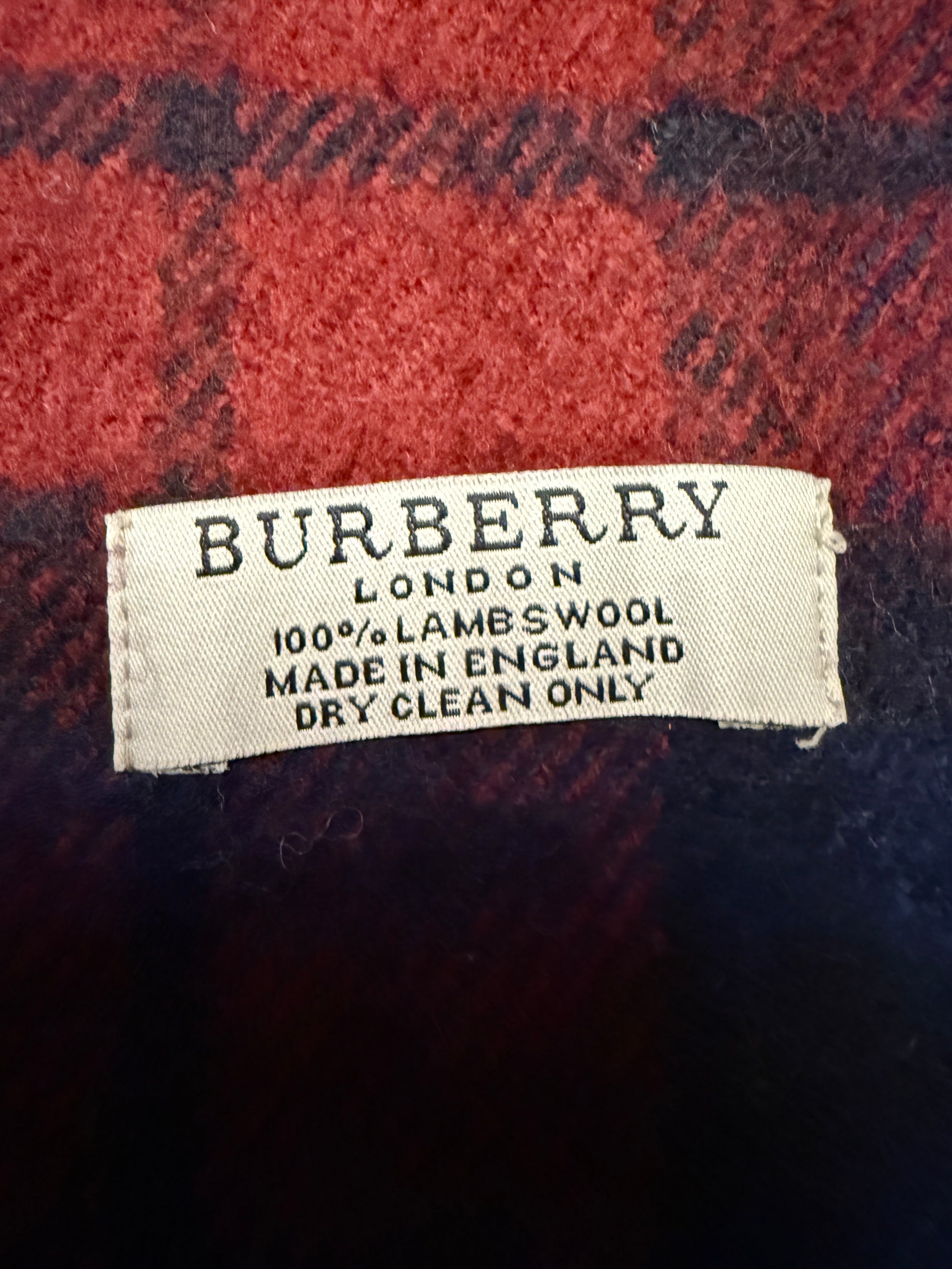 Burberry Schal 100% Lammwolle Vintage – Blau/Rot