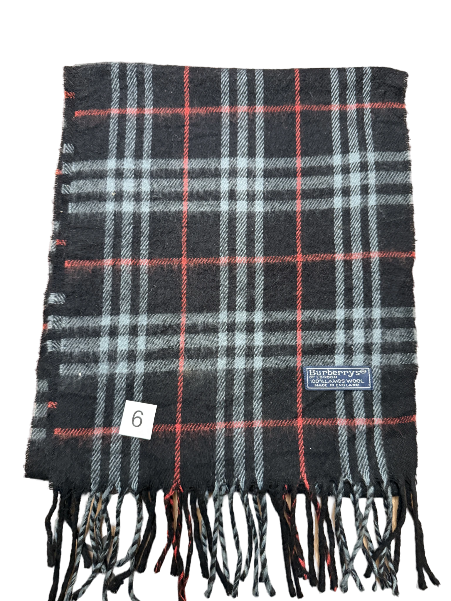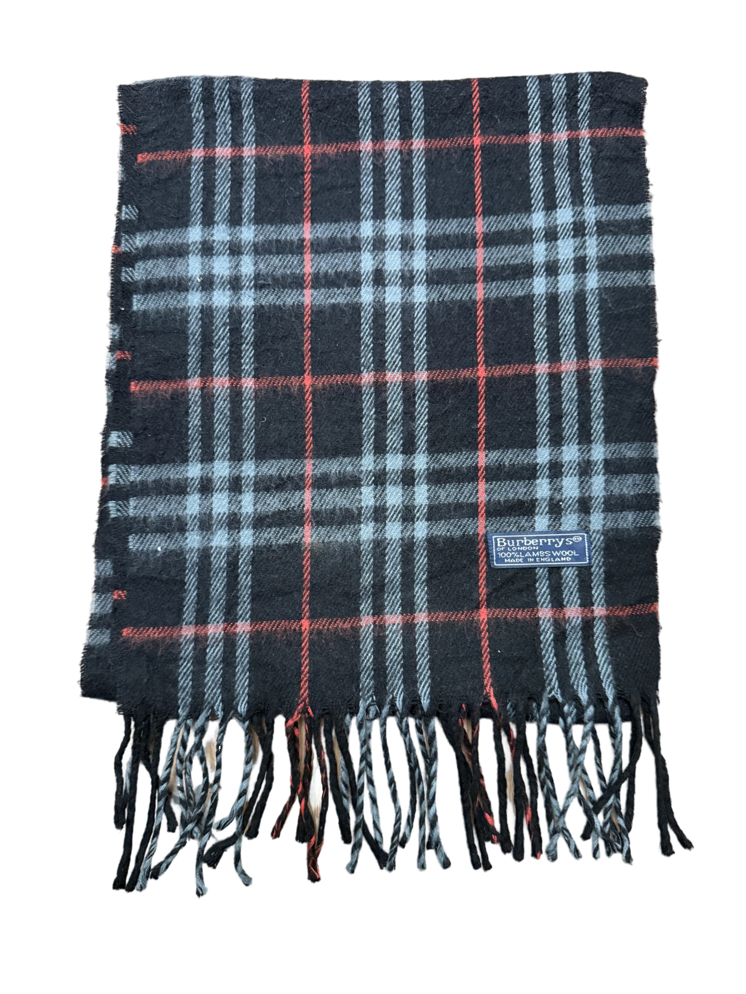 Burberry Schal 100% Lammwolle Vintage – Schwarz / Rot / Weiß